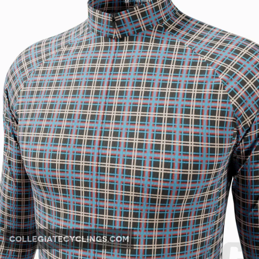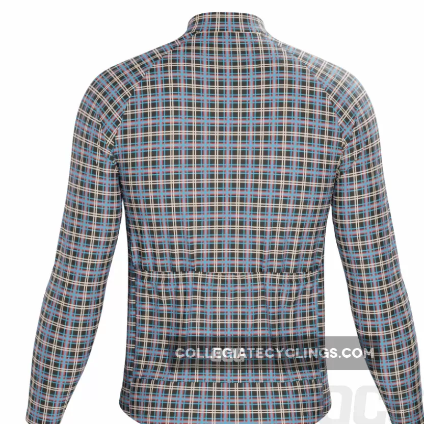 Men’s Blue Plaid Checkered Long Sleeve Cycling Jersey Details