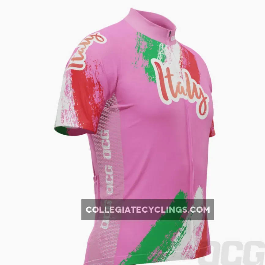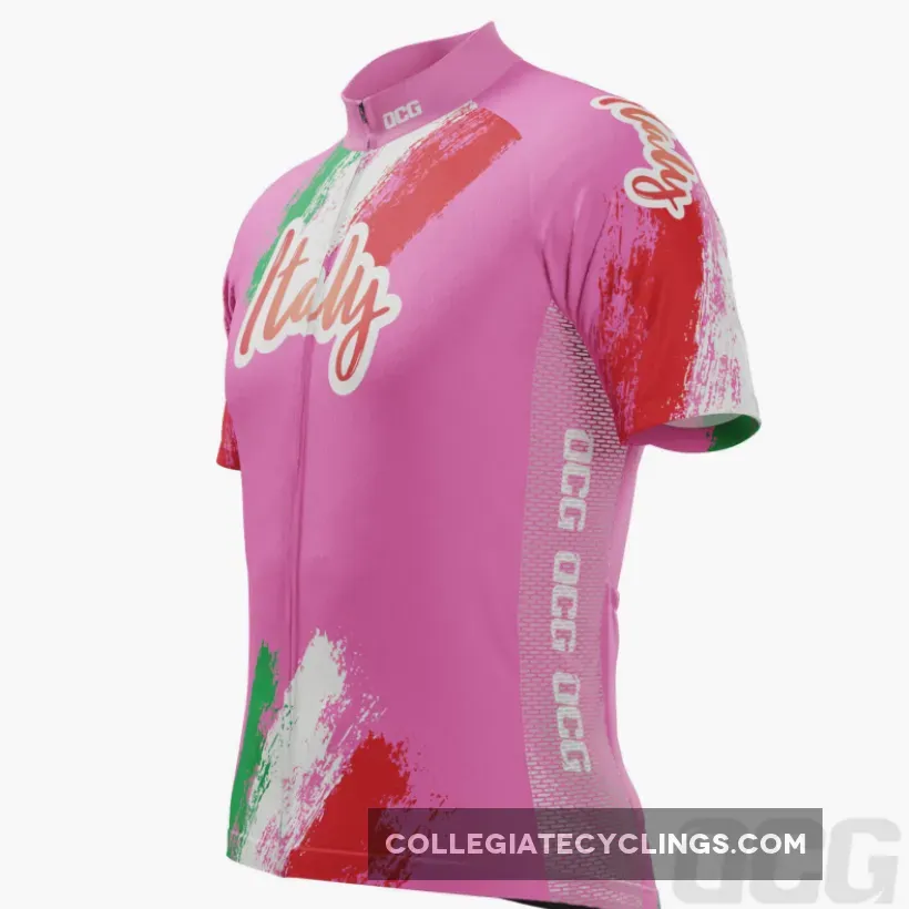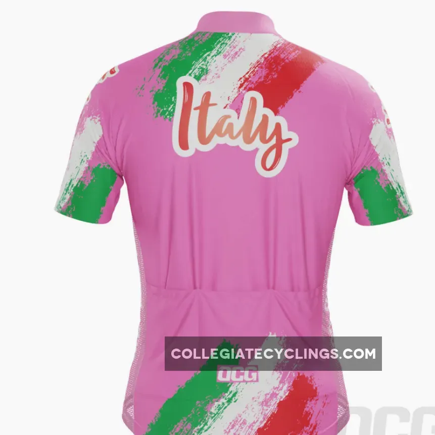 Inspired by the jersey that marked the 100th year of the Giro d’Italia in 2017, this Italy 100 Years Pink Cycling Jersey brings a high visibility pink design with Italian flag colors.