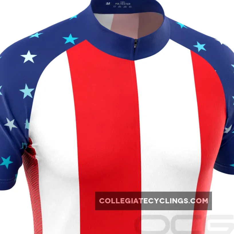 Men’s USA American Flag Short Sleeve Cycling Jersey Features