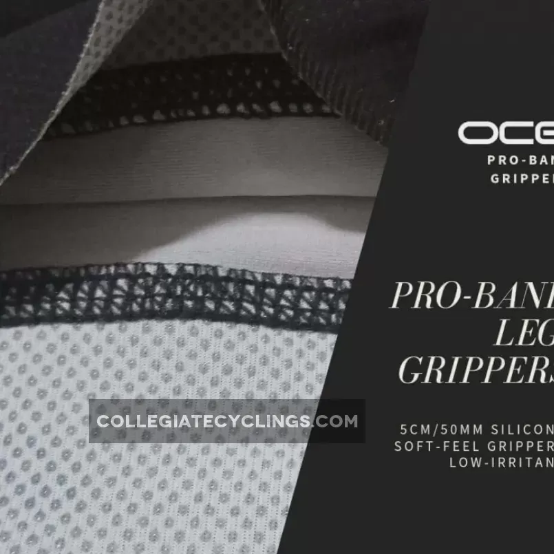 - Grippers: 45mm silicon Pro-Band leg grippers. Low irritant silicone waist gripper.